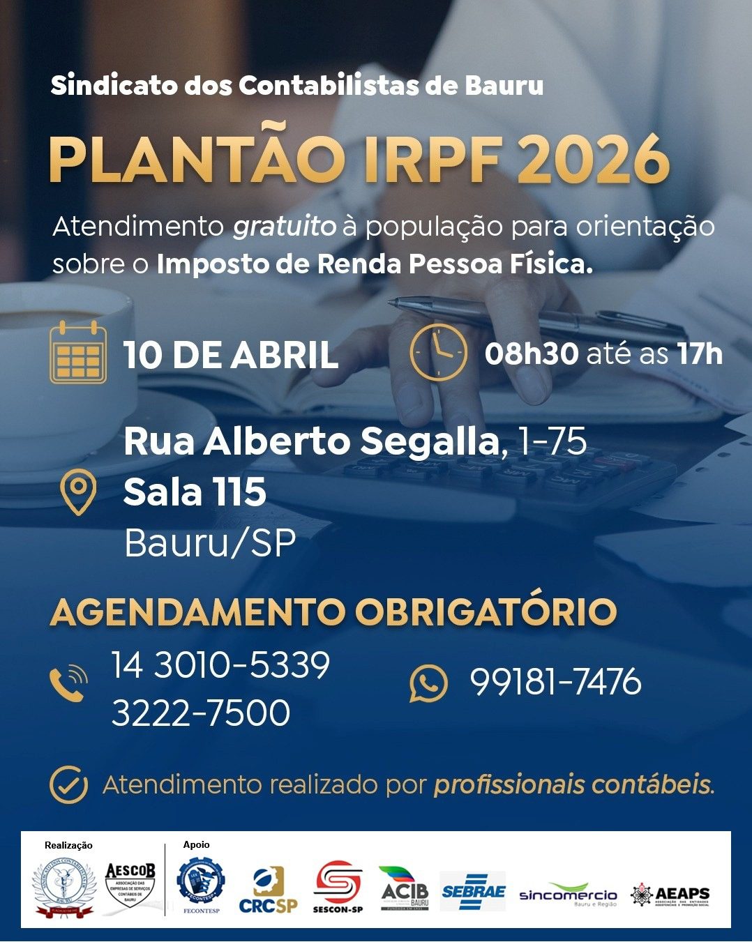 Fecontesp apoia plantão gratuito de IRPF em Bauru e reforça papel social dos profissionais contábeis