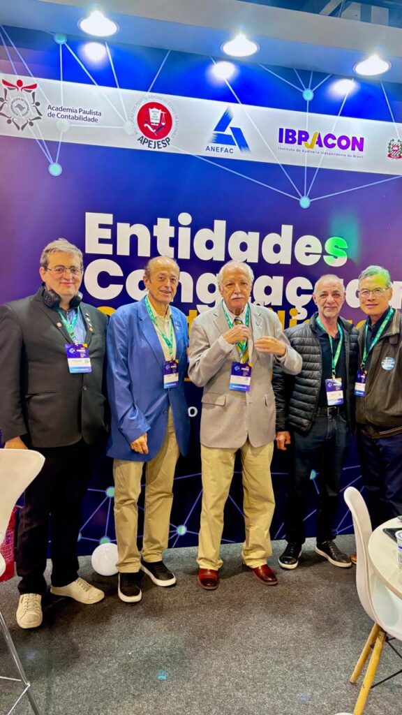 O presidente da Federação dos Contabilistas do Estado de São Paulo-Fecontesp, José Heleno Mariano, juntamente com o vice-presidente da Entidade, Cláudino Anibal Cleto, o vice-presidente de Educação e Cultura, Sérgio Stopato Aruda; o diretor Financeiro, Antonio Sofia, e outros diretores, receberam lideranças da classe contábil e presidentes dos Sindicatos Filiados em seu estande na 29ª Convenção dos Contabilistas do Estado de São Paulo, que aconteceu do dia 30 de setembro ao dia 02 de outubro de 2025, e se encerrou ontem, 02/10, confirmando seu status de maior e melhor evento da classe contábil do Estado de São Paulo.